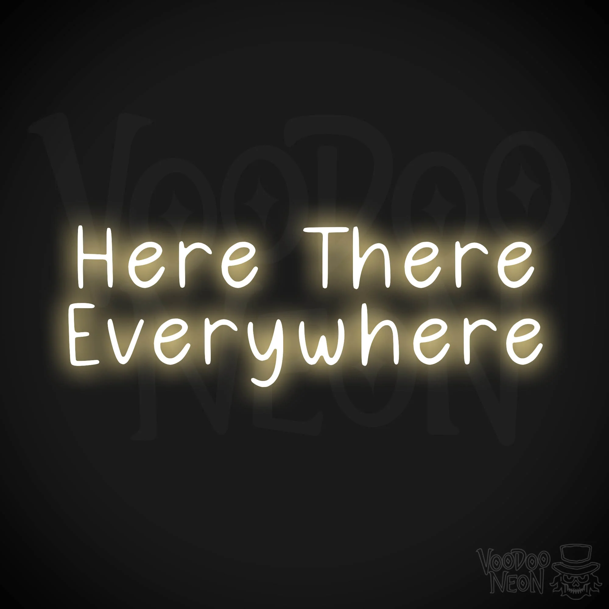 Transform any room into a vibrant, eye-catching space with our Here There Everywhere neon sign. This versatile decor is perfect for adding a touch of whimsy and light to your bar, man cave, teen's room, or dorm.